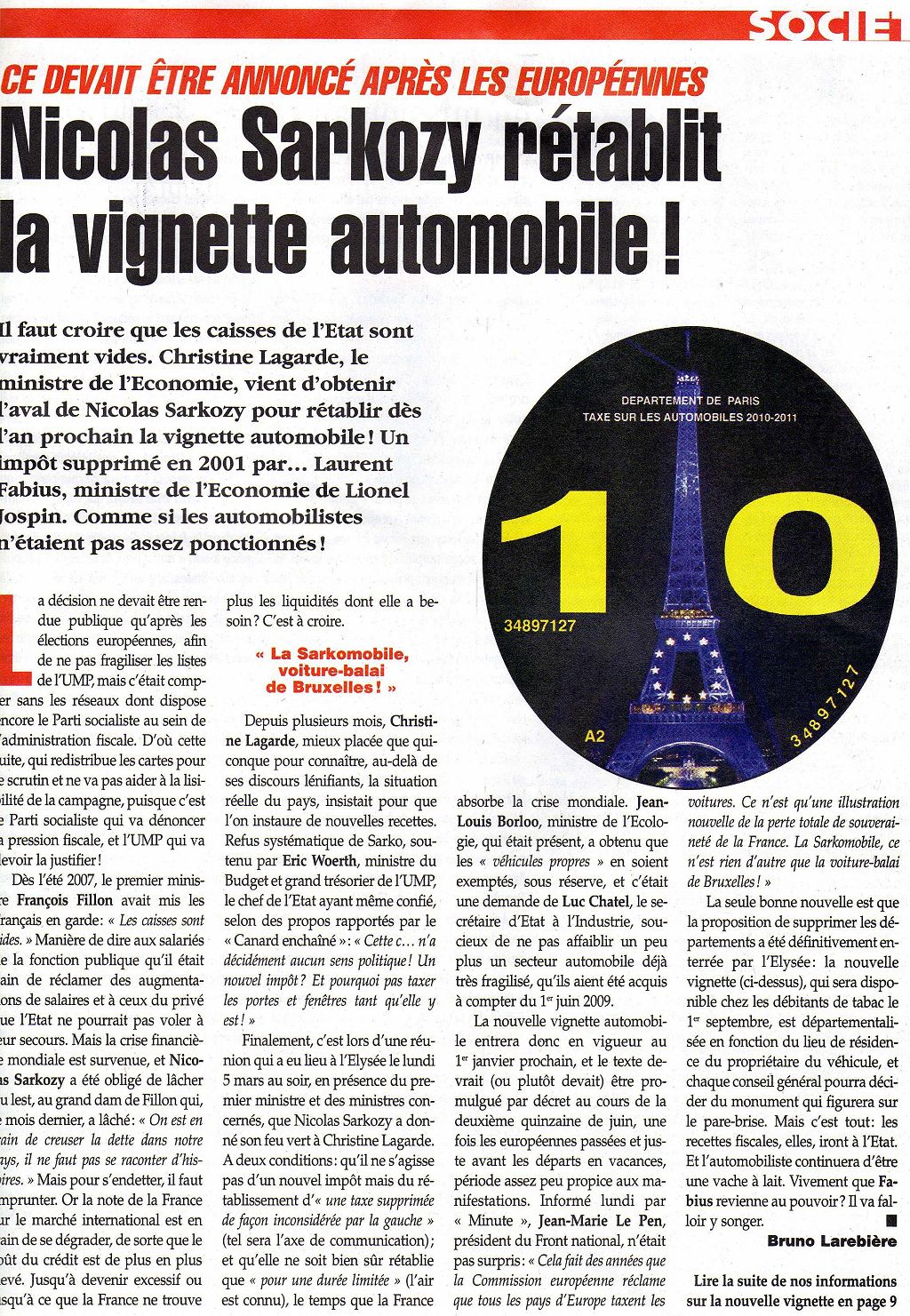 Après les élections rétablissement de la vignette automobile !