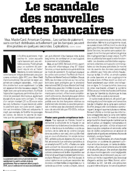 Micro-Hebdo en fait la preuve dans son numéro 745. Depuis le mois de mars, tous les Français sont susceptibles de recevoir cette nouvelle génération de cartes lors d’un renouvellement. Le hic, c’est qu’il y a une faille de sécurité. Et que pirater une carte en un quart de seconde est à la portée de tous. Démonstration avec Renaud Lifchitz, consultant sécurité chez British Telecom.
